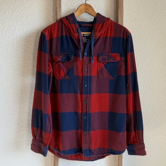 Mossimo Supply Co. Navy & Red Check Flannel Hoodie Sz: S