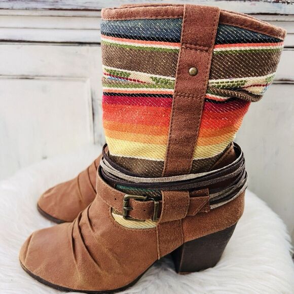 Mossimo Supply Co Southwestern Sunset Canvas Block Heel Pull on Boots - 5.5