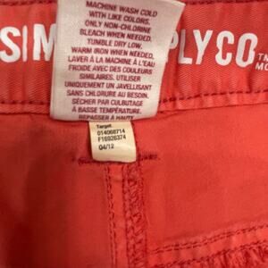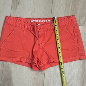 Mossimo Supply Co coral color with a low-rise, utility style design, perfect for a throwback look. Short- shorts Button fly closer