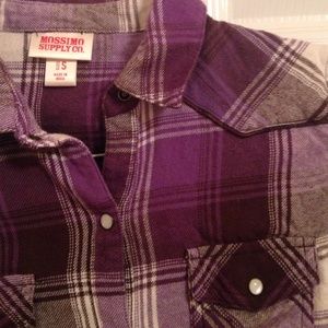 Purple plaid flannel pearl snap shirt. Only worn once! Mossimo Supply Co size small.