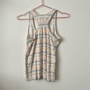 Mossimo Supply Co ivory cream ditsy blue orange floral stripe print racerback tank, Size S. Preowned.
