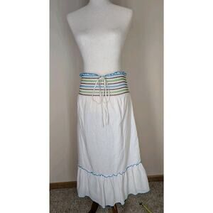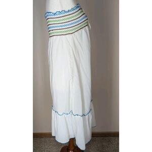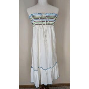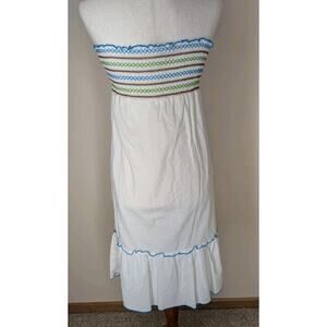 Mossimo Supply Strapless/Halter Dress L White Lined Cotton Ruffle Smocked Beach