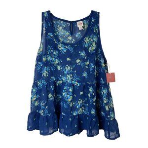 Mossimo Supply Women's Sheer Blouse Sz L Ruffle tiered Babydoll Top Cottagecore