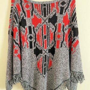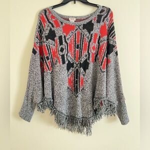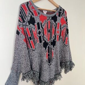 Mossimo Supply Co. Womens Sweater L/XL Poncho Cape Batwing Sleeve Knit Tribal Gray