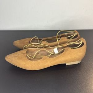 Mossimo Supply Co. Tan Camel Suede Flats Women's Size 10 Pointed Toe Lace Up. Great Pre-Owned Condition See Photos For Condition!