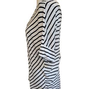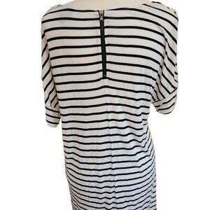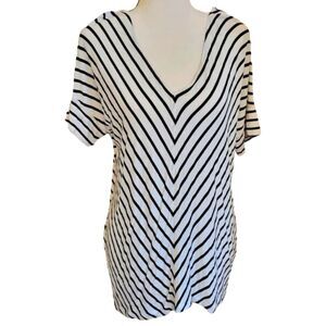 Mossimo Sz M V Striped Wht/Blk Vneck Cap Short Sleeve Zip Back Hi-Low Tee *Light Stains As Is, please read