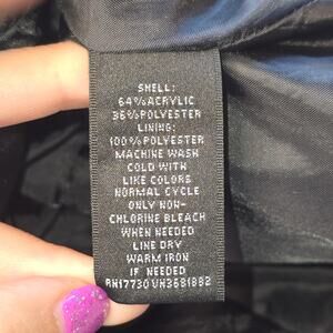 Material: Shell 54% acrylic, 36% polyester. Lining: 100% polyester. Machine washable.