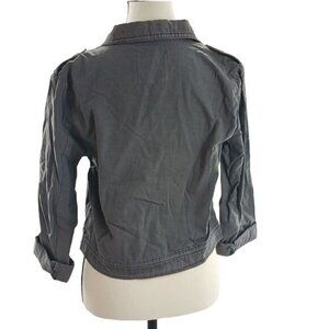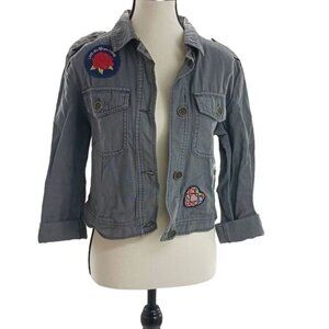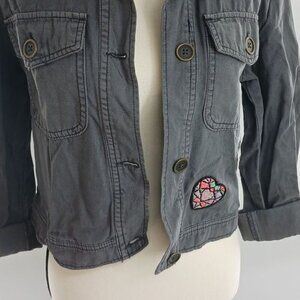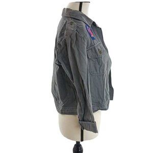Mossimo Utility Jacket Womens Size S Gray Button Front Embroidered Patchwork