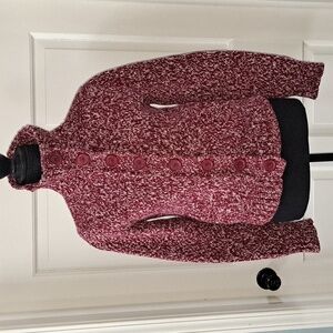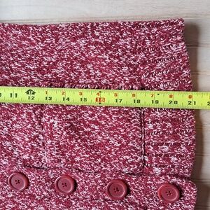 Cardigan, Sweater, Button-front, Ribbed knit, Textured knit, Women's, long sleeve, Casual, Red, Cream, Vintage, Pre-owned, Knitwear, Apparel, Clothing, Tops, Outerwear, Relaxed fit, Classic, Everyday wear, Warm, Cozy, Fall fashion, Winter fashion, Transitional piece, nautical, coastal.