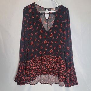 Mossimo Witchy Dark Romantic Fairy Grunge Flutter Sleeve Top Black & Red