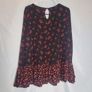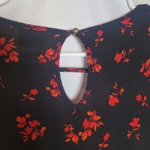 Mossimo Black and Red Dark Romantic Witchy Fairy Grunge Top. Has flutter sleeves and cutouts in front and back. Has no size tag so please see measurements in photos. In good preowned condition does have a stain that is hard to notice in front by bottom hemline.