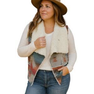 Mossimo Women Aztec Sherpa Vest Open Front Southwestern Rodeo Festival XL