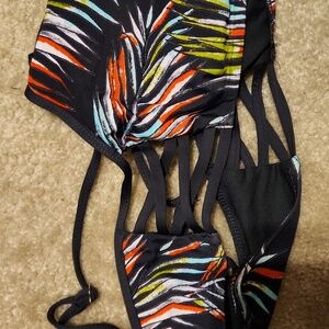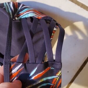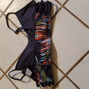 Mossimo Womens Bikini Size L Navy Palm Swimsuit Top Swim Beach Costal Floral