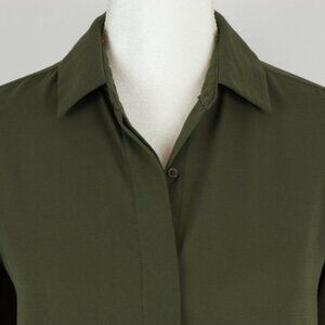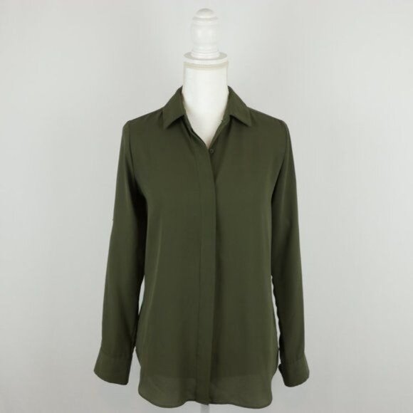 Mossimo Women's Extra Small Green Crepe Roll Tab Long Sleeve Button Up Shirt