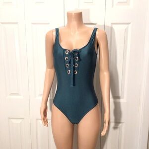 Mossimo Womens Green Grommet Lace Up One Piece Swimsuit Size Small. Very good condition with no visible flaws. From smoke free home.