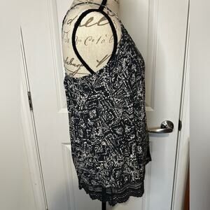 Lightweight, soft, tank by Mossimo Sz L. Crochet border on the bottom. It is navy, off-white and light pink.
