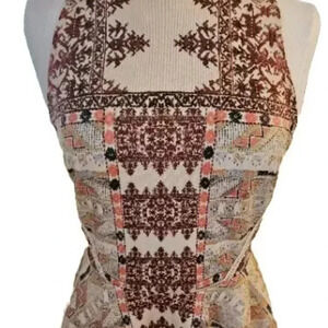 Mossimo Womens Medium A Line Burgundy And Ivory Multi Sleeveless Dress Zip Up