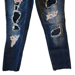 Mossimo Womens Mid Rise Jegging Skinny Jeans Size 00/24 Distressed Patched Capri