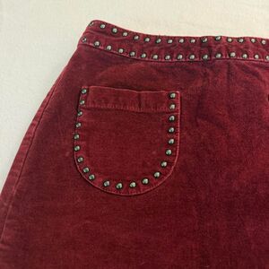 Burgundy studded velveteen mini skirt