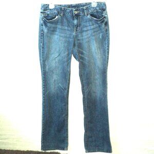 Mossimo Women's Size 10 L Denim Blue Jeans Distressed Boot Cut Curvy 34" Inseam