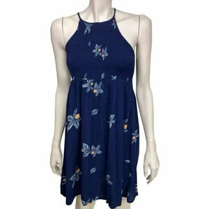 Mossimo Womens Size Medium Navy Blue Floral Sleeveless Sundress Rayon Keyhole