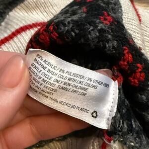 Mossimo Women’s XXL Gray Red Holiday Sweater Reindeer Snowflake Winter Christmas. Some stretch to the material. In used condition. Does show wash wear, but no other structural issues.