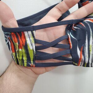 Mossimo Women's Y2K Navy Tropical Leaf Cage Side Pull On Bikini Swim Bralette S