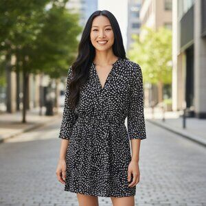 Adjustable Sleeve V Neck Elastic Waist Dress