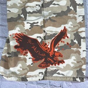 Mossimo Y2K 2003 Vintage Camo Eagle Tan Orange Board Swim Shorts size 38 NEW