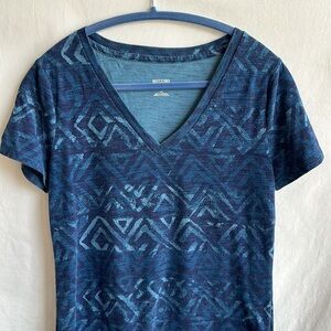 Mossimo blue Aztec print V-neck tee, size L. Good preowned condition. Cotton/polyester blend.