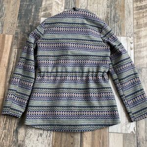 Medium weight wool mix Mossimo jacket. Faux fur hood, 2 pockets, synch waist. Size large. Great used condition. Awesome colors!