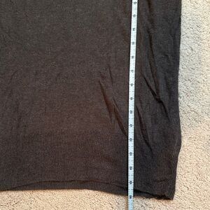 This lightweight brown fitted V-neck top is comfortable & light enough to be comfortable indoors in the winter. Its soft fabric ensures comfort and style throughout the day. Please review measurements. It is fitted.