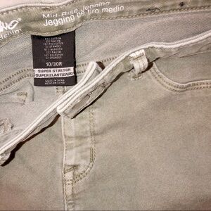 Mossimo mid rise jegging size 10/30R super stretch distressed jeans w/raw hem