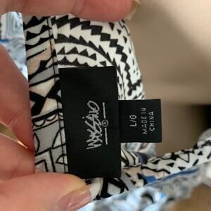 Black white cream blue patterned romper from mossimo by target. Fit me oversized. Now no longer fits me due to pregnancy. Cross over front with modesty panel.