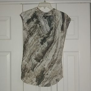 Marble tans and browns, cap sleeve, scoop neck, size XS