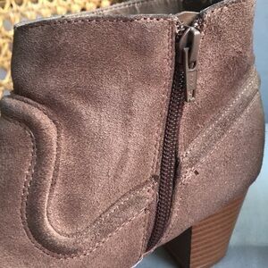 Mossimo supply Co. Gray suede, chunky heel, zip up, ankle booties size 8.5