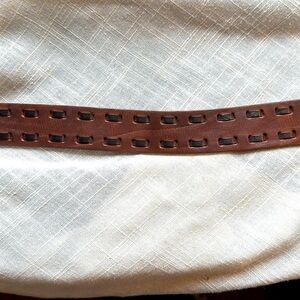 Great preowned condition. Very little wear on this rustic western bohemian genuine leather belt. SZ L. Measurements are approximate laying flat in pictures. Please see all nine photos provided.