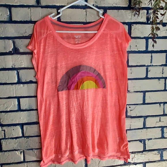 Mossimo tee with rainbow graphic. Small hole in back close to right sleeve.
