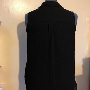 Mossimo women’s sleeveless button top in size large. Hidden buttons. Longer in the back. 100% polyester hangs loose and flowy.