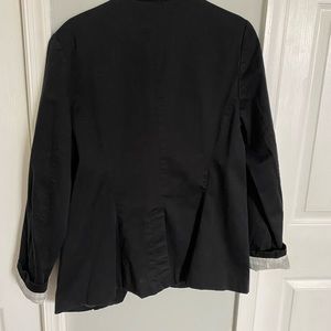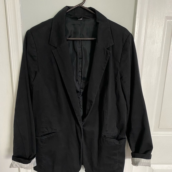 Mossimo womens casual suit jacket. Size large. Pin stripped lining. Small rip inside the right pocket. See picture. Gently worn.