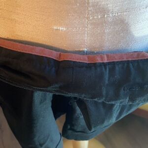 Mossimo Fit3, black cloth shorts. Women’s 8. Cuffed bottoms with burgundy accent lining on the inside. Pockets.