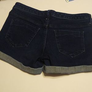 Mossimo Mid-Rise Midi Short Dark Denim Size 0. Waist 14 1/2" Across Laid Flat Length 9 1/2".