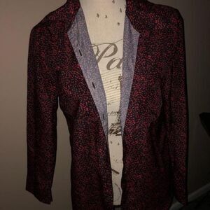 Mossimo Red & Black Button Up Blouse