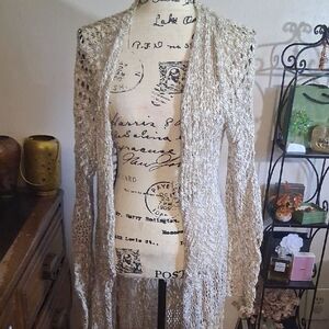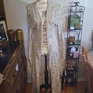 Mossimo Supply Co. Beige/white Long Knit Cardigan Sweater Duster XXL