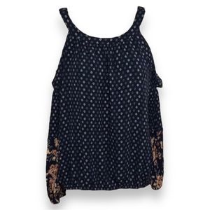 Mossimo Supply Co Navy Floral Cold Shoulder Long Sleeve Blouse Top Size XS