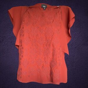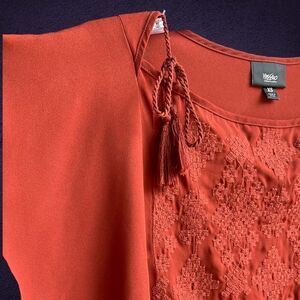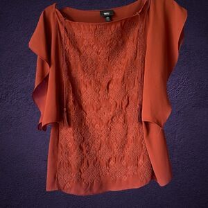 Mossimo Supply Co.Brown embroidery Ruffle sleeves shiny silky top Size S