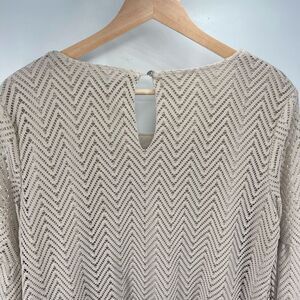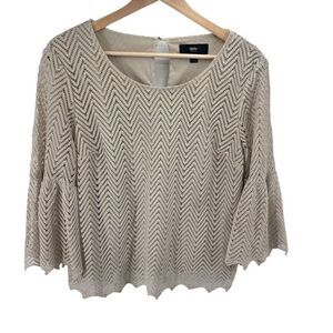 Mossimo Womens Chevron Blouse Top Lace Spiderweb Scallop Lined Beige Size Large
