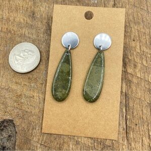 Mossy Green Hanging Teardrop Jasper Studded Back Earrings