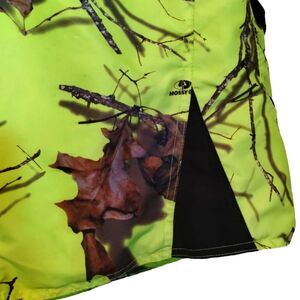 These are a great pair of Mossy Oak Board Shorts Mens Large Neon Green Brown Leaf Camo Swim Trunks Cargo 9" Inseam.