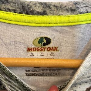 Embrace the outdoors with the Mossy Oak short sleeve tee, featuring a realistic green and brown camouflage pattern. Crafted for comfort, this tee is perfect for blending into natural surroundings during outdoor adventures.